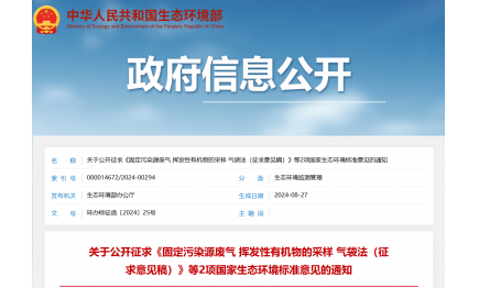 生态环境部发布2项国家生态环境标准征求意见稿2024-08-29 -